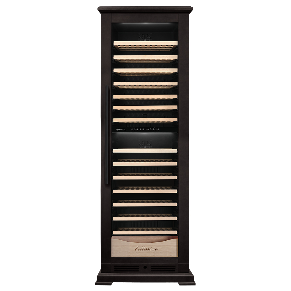 Винный шкаф предназначен для профессионального и длительного хранения различных сортов вин (до 174 бутылок типа Бордо). Он так же оснащен дверью с защитой от ультрафиолетовых лучей и поддерживает влажность в диапазоне 60-80%, как в настоящем винном погребе. Стальной корпус обшит натуральным буком, который выдерживает большие нагрузки и обладает красивой текстурой.